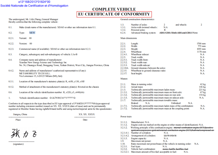 MEW 60V20Ah 1500W 25/45km/h 70Km